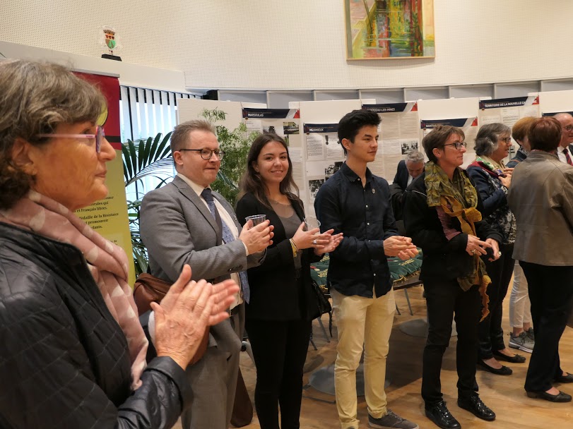 M. Schmitt a été appelé à sièger à la table du maire d’Oyonnax, M. Michel Perraud, avec M. Blanchetier, le général Baptiste, le maire de Nantua, celui de Nouméa (Mme Lagarde), la maire de Plougasnou (Finistère, baie de Morlaix, 75km à l’Est de Brest), Mme Bernard (c’est la commune qui gardera le drapeau pour l’année 2020-2021). Il y avait aussi le président de cette nouvelle association de descendants de médaillés de la Résistance.